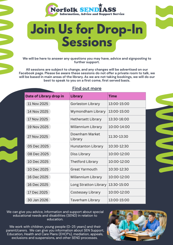 Find out where you can come and chat to us at a library drop-in session in the next couple of months.